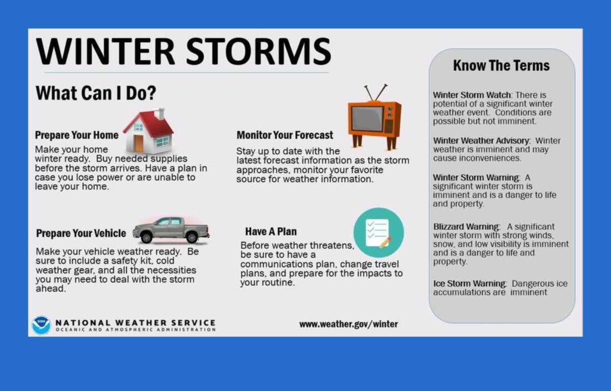North Carolina Emergency Management reminded residents that cold weather can cause frostbite or hypothermia. Frostbite can freeze skin, causing redness, numbness or stiffness, while hypothermia occurs when core body temperature drops below 95 degrees, potentially leading to confusion, slurred speech, or a weak pulse. For more information, visit ReadyNC.gov/winter-weather